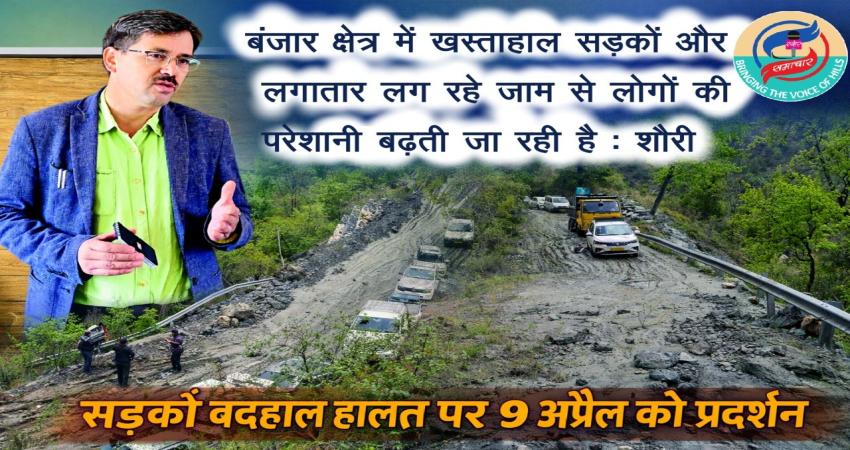 बंजार के विधायक सुरेंद्र शौरी ने कहा कि क्षेत्र की सड़कों की दयनीय स्थिति और रुके हुए विकास कार्यों के खिलाफ सरकार को जगाने के लिए 9 अप्रैल को बंजार नगर में बड़ा प्रदर्शन किया जाएगा। उन्होंने कहा कि आपदा को बीते आठ महीने से अधिक समय हो चुका है, लेकिन अब तक स्थिति में कोई ठोस सुधार नहीं हुआ है।