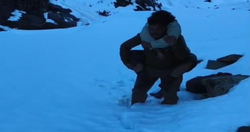 मौके पर पहुंचने पर पाया गया कि उक्त व्यक्ति धुंधी ब्रिज से लगभग 2 से 3 किलोमीटर ऊपर बर्फ के बीच फंसा हुआ था तथा चलने में असमर्थ था।