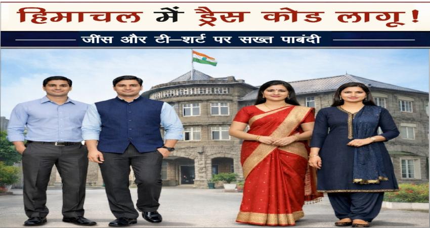 शिमला। हिमाचल प्रदेश में सरकार ने सरकारी कर्मचारियों के लिए ड्रेस कोड जारी किया है। दफ्तरों में आने वाले पुरुष कर्मचारियों को शर्ट-पैंट पहन कर आना होगा। वहीं, महिलाओं के लिए साड़ी या सूट-सलवार निर्धारित की गई है। सरकार ने जींस, टी-शर्ट और पार्टी वियर पहनने पर रोक लगाई गई है.। हिमाचल सरकार के परसोनल विभाग के संयुक्त सचिव नीरज कुमार की तरफ से ये आदेश जारी किए गए हैं। आदेश में लिखा गया है कि महिला कर्मचारी और अफसर कॉलर वाली शर्ट और फॉर्मल पेंट पहनकर दफ्तर आएंगे।