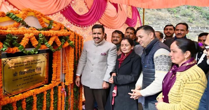मंडी। लोक निर्माण एवं शहरी विकास मंत्री विक्रमादित्य सिंह ने आज शिमला ग्रामीण विधानसभा क्षेत्र की थाची पंचायत में थाची-रेहाना सड़क पर 1.13 करोड़ रुपए की लागत से निर्मित किए गए पुल, 20 लाख रुपए की लागत से निर्मित पंचायत सामुदायिक भवन थाची, 10 लाख रुपए की लागत से निर्मित सामुदायिक केंद्र शालीघाट तथा 13 लाख रुपए की लागत से निर्मित शाहली से नलाओं एंबुलेंस सड़क का शुभारंभ किया।