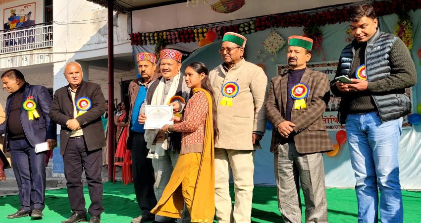 समारोह के मुख्यातिथि राम सिंह मियां ने बच्चों के कार्यक्रम की सराहना करते हुए कहा कि आज के समय में विद्यालय में पढ़ाई के साथ-साथ अन्य गतिविधियों पर भी बल दिया जा रहा है जो काबिले तारीफ है। इस मौके पर मुख्यअतिथि ने मेधावी विद्यार्थीयों को पुरस्कृत भी किया। कक्षा छठी में चांदनी ठाकुर को प्रथम आयुष कुमार को द्वितीय तथा नेहा को तृतीय स्थान हासिल करने पर पुरस्कार मिला। कक्षा सातवीं में विकास, अक्षय, नीतिका व शिवम कक्षा आठवीं में रोहित भारती, दुग्गल व पवन कुमार कक्षा 9वी में विकास ठाकुर, समायरा गर्ग व हिमांशी बेदी तथा दसवीं में शीतल ठाकुर कमल ठाकुर बम, मोनिका कुमारी को पहले दूसरे तथा तीसरे स्थान के लिए पुरस्कृत किया गया । ग्यारहवीं कक्षा में दिया ठाकुर, प्रिया व मोहित तथा बारहवीं की पल्लवी, अंजली व अवंतिका को पहले, दूसरे व तृतीय स्थान के लिए पुरस्कृत किया गया । वहीं दिया ठाकुर व निखिल भारती को उत्कृष्ट एनएसएस स्वयंसेवी, वंश को उत्कृष्ट स्काउट तथा चांदनी को उत्कृष्ट गाईड, आर्यभट्ट सदन को बैस्ट हाउस,