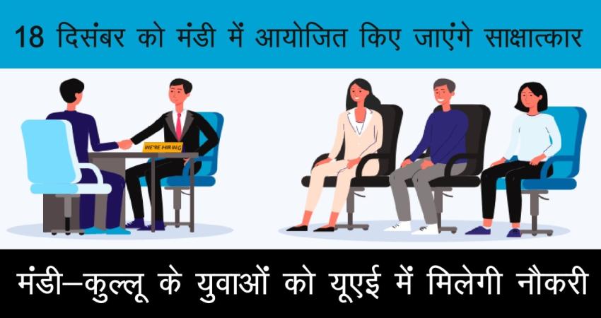मंडी। संयुक्त अरब अमीरात (यूएई) में नून फूड एलएलसी (किराना एवं खाद्य वितरण) के लिए डिलीवरी राइडर्स तथा वेयर हाउस हेल्पर के पदों पर भर्ती की जाएगी। इसके लिए मंडी और कुल्लू जिलों के पूर्व पंजीकृत आवेदकों के साक्षात्कार 18 दिसंबर को होंगे। साक्षात्कार क्षेत्रीय रोजगार कार्यालय मंडी (खलियार) में सुबह 10 बजे से लिए जाएंगे।